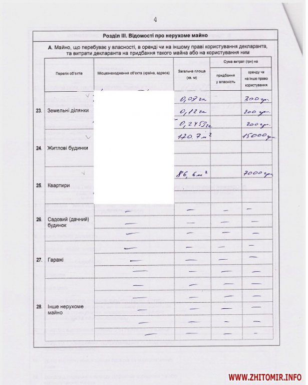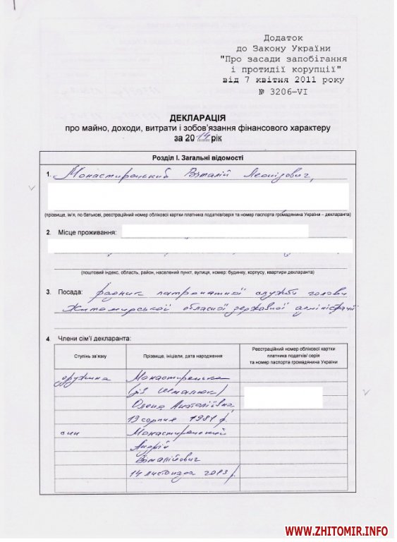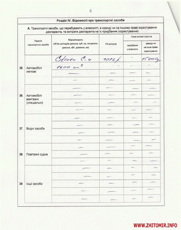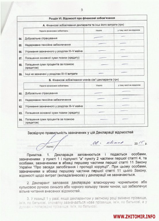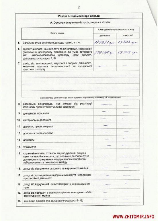 Копія заяви претендента на посаду та декларація про доходи за 2014 рік опубліковані на сайті Житомирської облдержадміністрації.