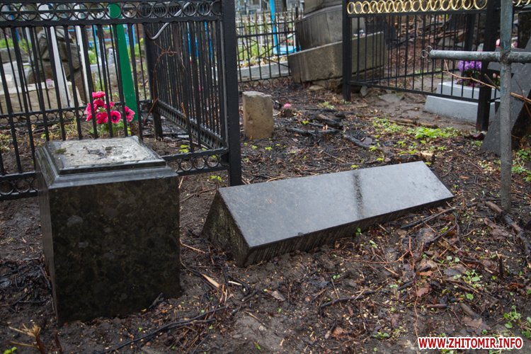 В Житомире на Русском кладбище несколько деревьев упали на могилы, разрушив памятники и помяв ограды. Люди уверены, что деревья неаккуратно спилили коммунальщики, сотрудники спецкомбината утверждают – деревья повалил ветер, они только порезали стволы.