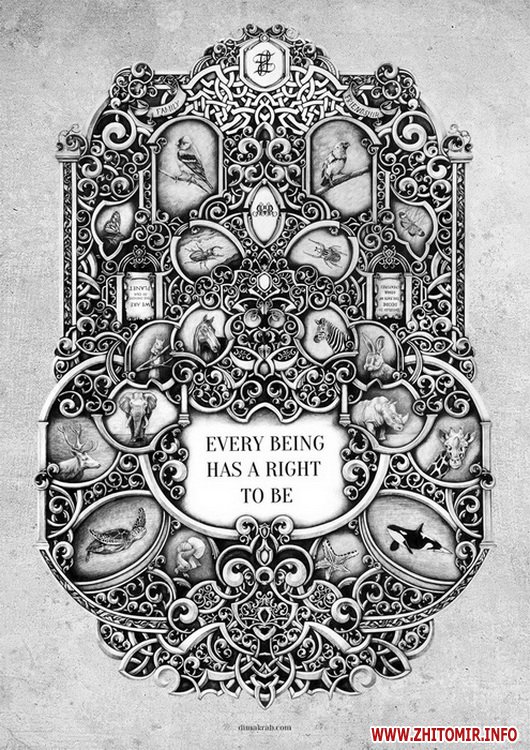 Житомирський художник Дмитро Краб завершив свою нову роботу, присвячену тваринам «EVERY BEING HAS A RIGHT TO BE», що в перекладі означає – «кожна істота має право на існування».