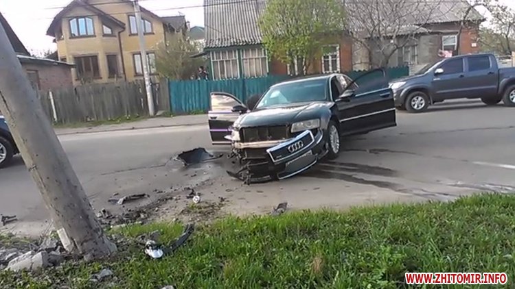 26 апреля около 17 часов на улице Шевченко в Житомире легковушка сбила бетонный столб. По словам очевидцев, водитель автомобиля Audi, который попал в аварию, был нетрезв.