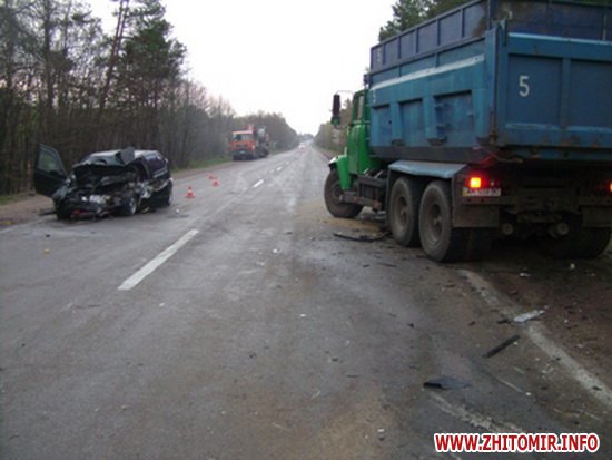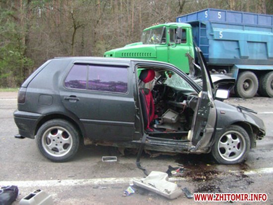 Около 5:45 25 апреля на 105-м километре автодороги Выступовичи - Житомир, вблизи с. Веселовка Коростенского района, водитель автомобиля Volkswagen Golf, 24-летний житель Республики Молдова, двигаясь в направлении г. Коростеня, выехал на встречную полосу движения, где столкнулся с автомобилем КрАЗ под управлением жителя г. Андрушевка, 1980 г. р.