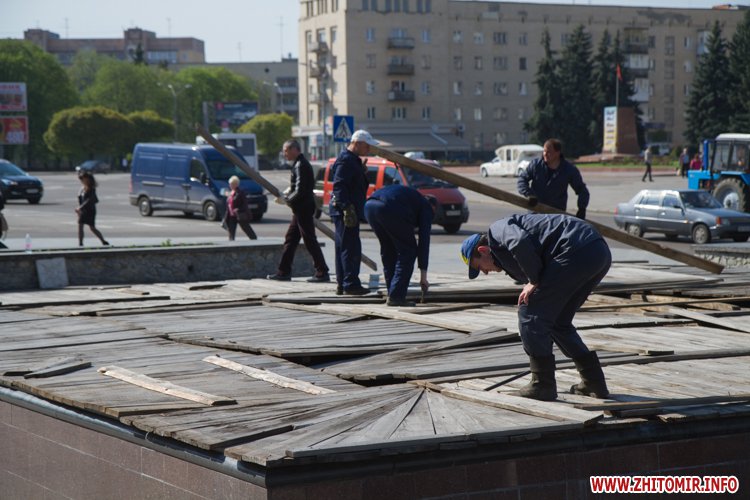 Так, 28 апреля на Соборной площади коммунальщики разбирали деревянное укрытие над фонтаном. По словам рабочих, включат его после тщательной проверки, не ранее 29 апреля.