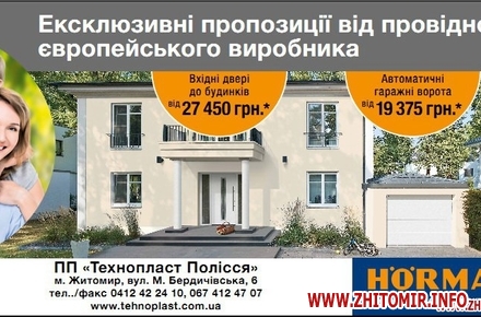Заказывайте изделия от Hörmann и Urbaco в офисе Технопласт-Полесье по адресу: г. Житомир ул. М. Бердичевская, 6 или звоните по телефонам: (0412) 42-24-10; (067) 412-47-07. Также заходите на веб-сайт .