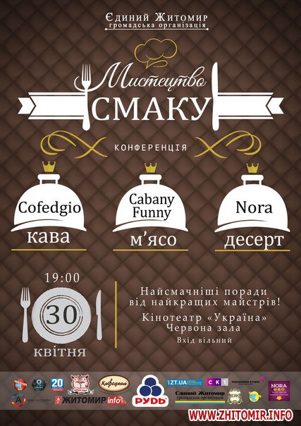 Запрошуємо Вас до участі у новому соціальному проекті «Мистецтво смаку». Зустріч відбуватиметься у формі конференції у червоній залі кінотеатру «Україна» (вул. Київська, 13).