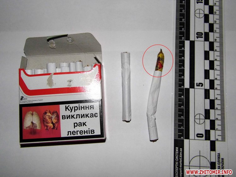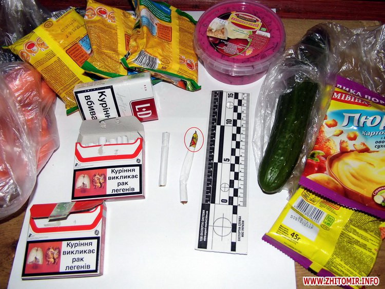 27 квітня під час догляду продуктової передачі для ув’язненого Щ. у двох цигарках було виявлено зайві підозрілі предмети. У міцно перемотаних пакунках знаходились марлеві тампони з характерним різким запахом. Передавала передачу мешканка міста Житомира громадянка Г., яка була затримана працівниками міліції на місці події.