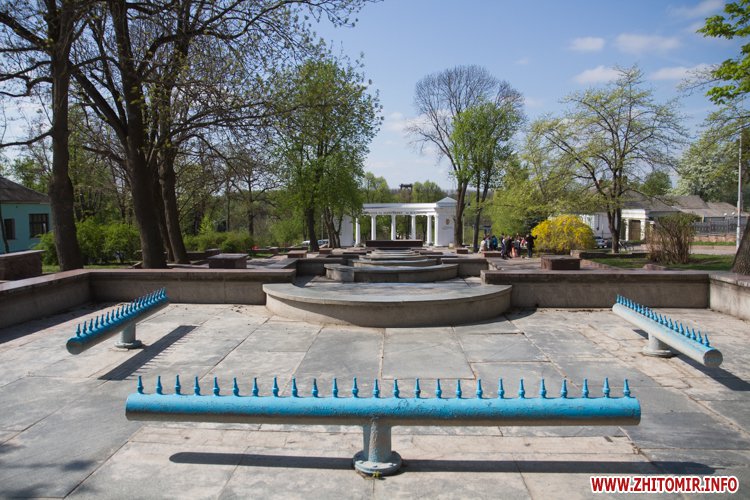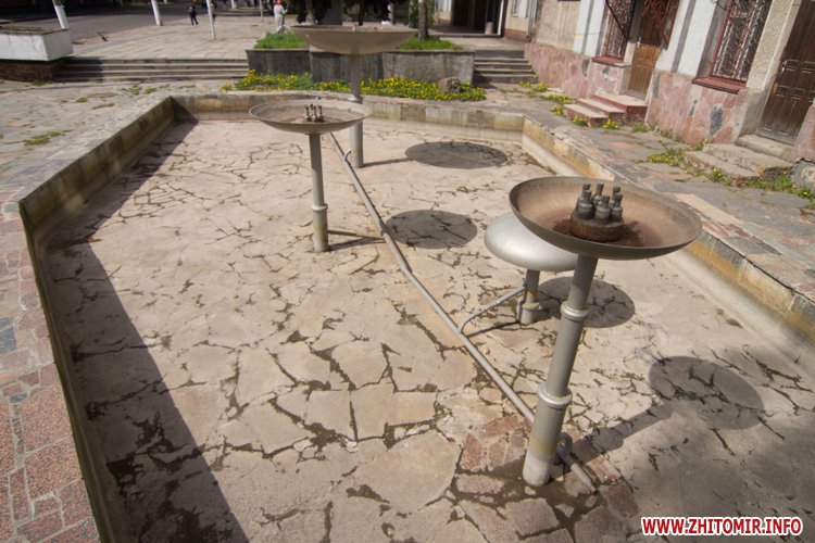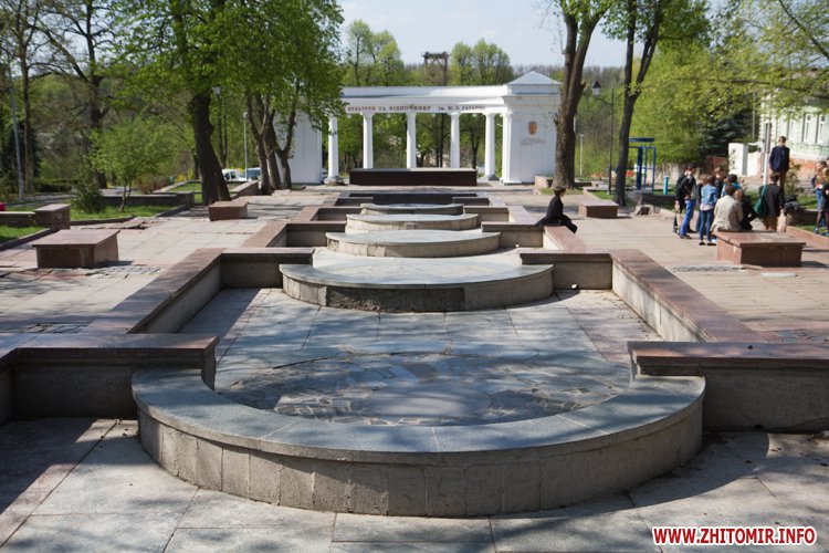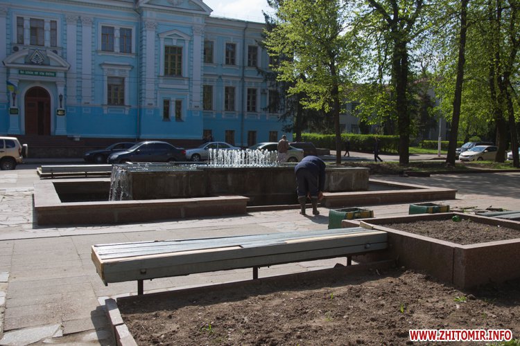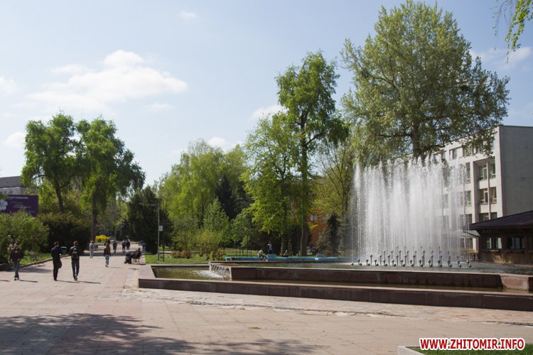 Небольшими струйками воды заиграл и фонтан на Старом бульваре возле центрального корпуса Житомирского агроэкологического университета. Работает также и небольшой фонтанчик возле ЖДУ им. Франко.