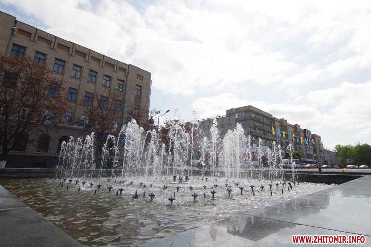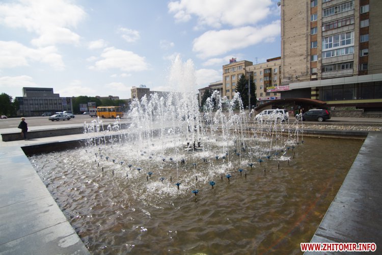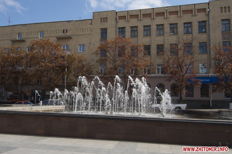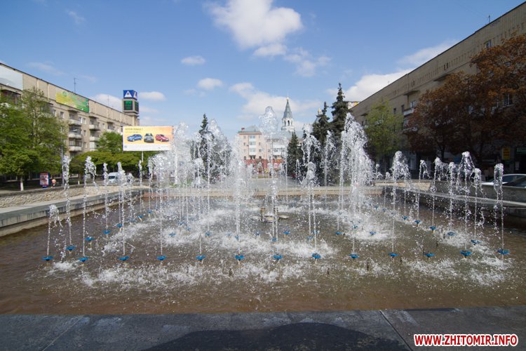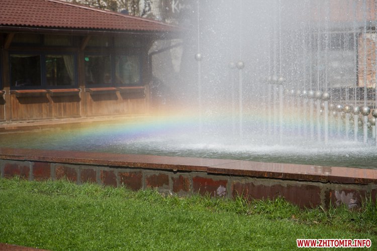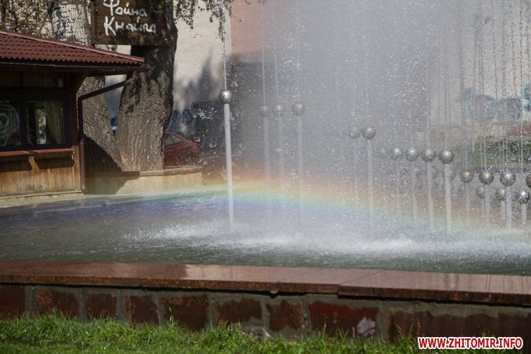Работает также фонтан возле кинотеатра «Жовтень», где житомиряне могут не только насладиться шумом воды, но и полюбоваться разноцветной радугой.