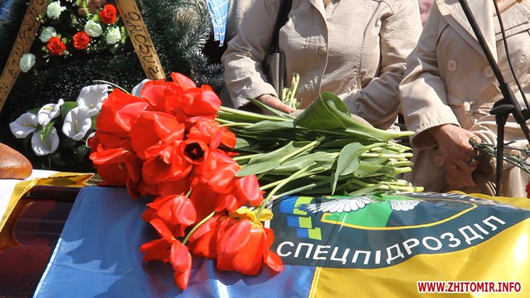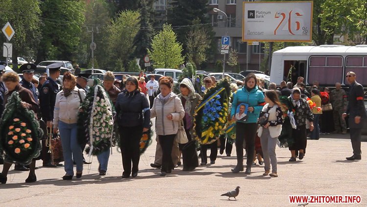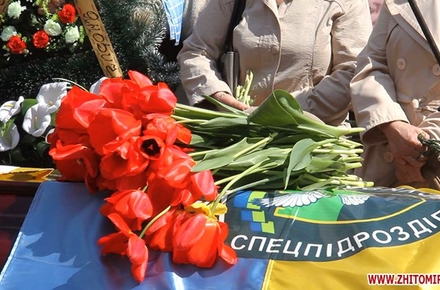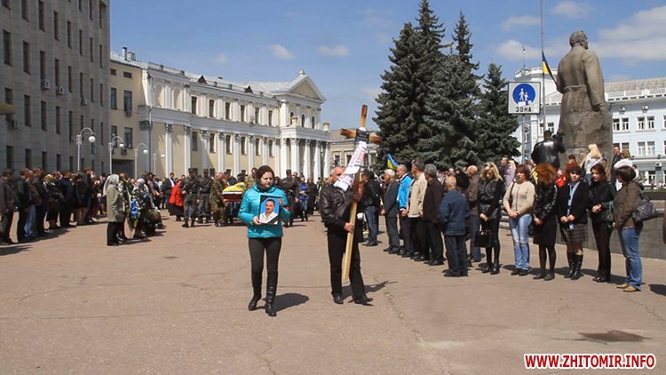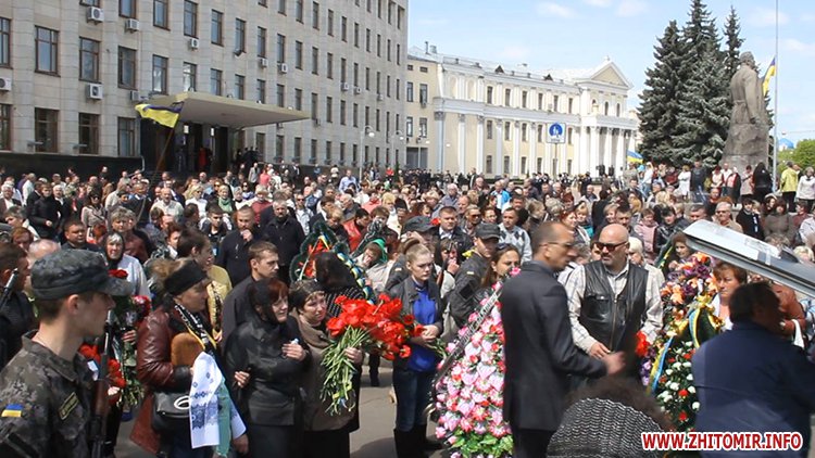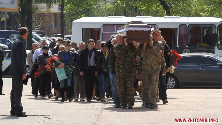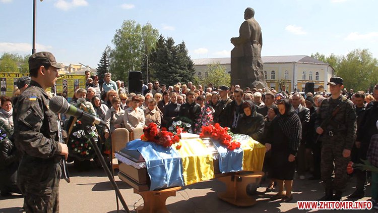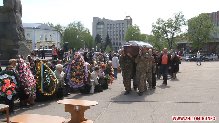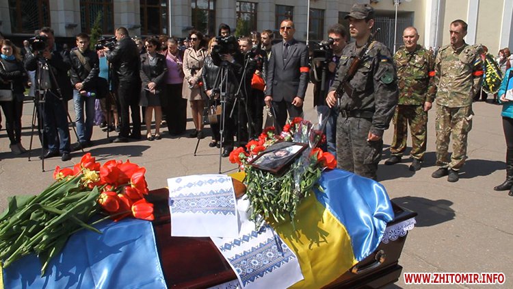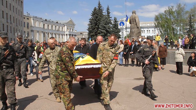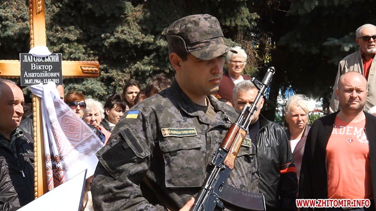 30 квітня кількасот житомирян на майдані Корольова провели в останню путь загиблого бійця батальйону «Артемівськ» Віктора Лаговського.