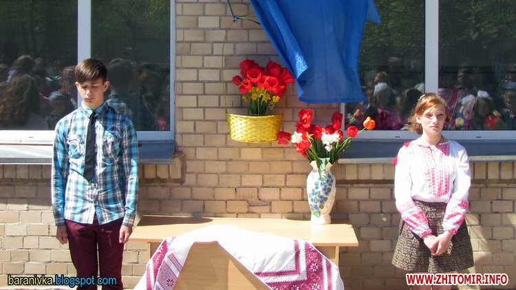 Відкривали пам’ятну дошку директор місцевої школи Володимир Гнітецький та однокласниця загиблого бійця Інна Гнітецька.