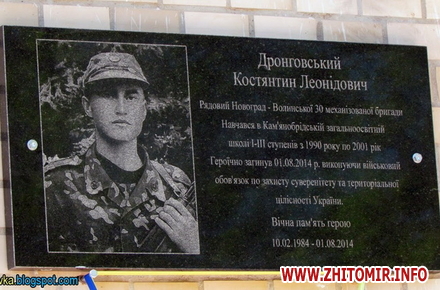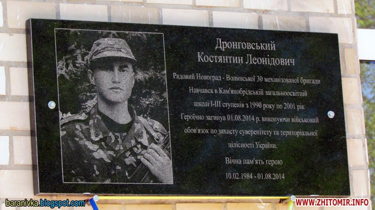 30 квітня на фасаді Кам'янобрідської школи, що у Баранівському районі, відкрили пам’ятну дошку загиблому на сході України військовослужбовцю 30-ї окремої механізованої бригади Дронговському Костянтину Леонідовичу.