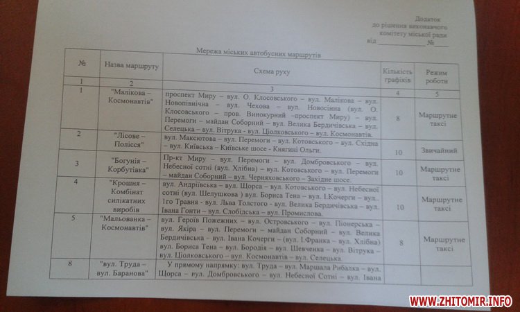 Як повідомляв Житомир.info, у проекті рішення пропонувалося затвердити міську автобусну мережу з 21 маршруту.