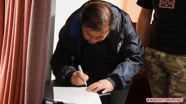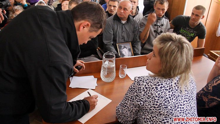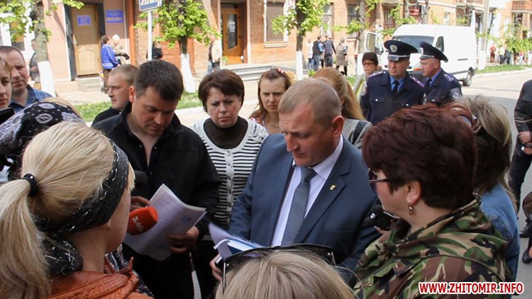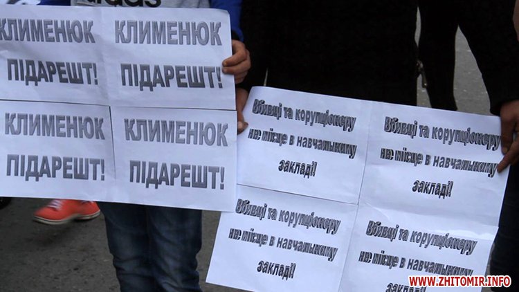 «До президента України Порошенка, прем’єр-міністра Яценюка, Генеральної прокуратури, голови Житомирської ОДА. Вимагаємо зняти із займаної посади та притягнути до кримінальної відповідальності директора Бердичівського медичного коледжу Клименюка Володимира Петровича, як особу, причетну до доведення до самогубства студентки третього курсу Олексіюк Катерини Михайлівни, а також систематичне зловживання службовим становищем», - зачитує голова ГО «Фенікс» Любов Трибун.