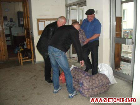 «Малинська районна державна адміністрація вже вкотре направила благодійну допомогу на схід України. Нині там перебувають будівельники Житомирщини – по 10 від кожного району, які працюють на зведенні оборонних споруд. Чоловікам буде відправлено продуктовий вантаж, який централізовано формується у Житомирі за участі всіх районів області. З Малинської райдержадміністрації направлено автомобіль з крупами, борошном, олією, салом, чаєм, печивом, домашньою консервацією та картоплею, значну частину якої передала Поліська дослідна станція», - інформує Малинська РДА.