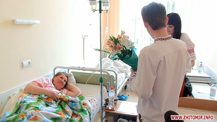 Святкувати день вишиванки у Житомирі почали з пологового будинку. Для батьків квіти, диск з колисковими і книга, а для малят - крихітні вишиті сорочечки. З такими подарунками гості навідуються до житомирянок, які щойно народили.