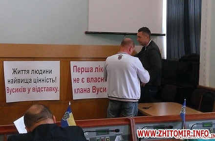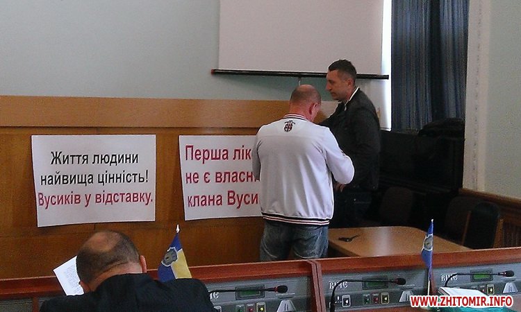 «Під час сесії Житомирської міської ради представники громади звернулися до депутатів відправити у відставку керівника першої міської лікарні Анатолія Вусика. Така позиція житомирян обумовлена тим, що напередодні в декількох ЗМІ з’явилася інформація про конфліктну ситуацію в лікарні. Для того, аби вислухати дві сторони конфлікту, а також зрозуміти суть проблеми, на сесії було прийнято рішення вивчити це питання. До 1 червня робоча група на чолі із заступником міського голови Олександром Бочковським, а також керівниками управління охорони здоров’я, депутатами, членами виконавчого комітету, журналістами та представниками від громади», - йдеться у повідомленні.