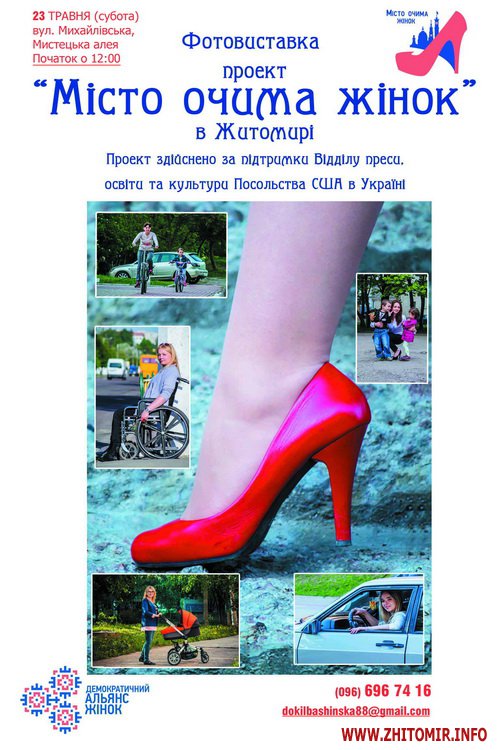 В суботу, 23 травня з 12.00 у Житомирі на вул. Михайлівській («Мистецька Алея») відбудеться фотовиставка в рамках проекту «Місто очима Жінок».