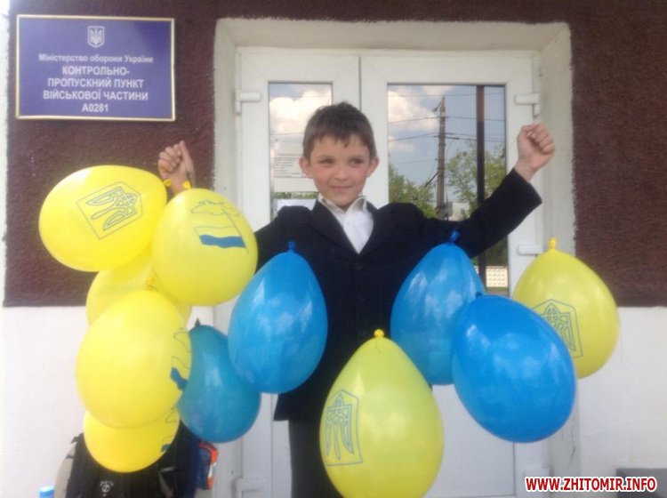 Ось цей хлопчик не пішов до школи, бо хотів зустріти військових. Прочекав на КПП близько пяти годин, за цей час надув кульки та нарвав букет кульбабок, щоб привітати десантників з приїздом.