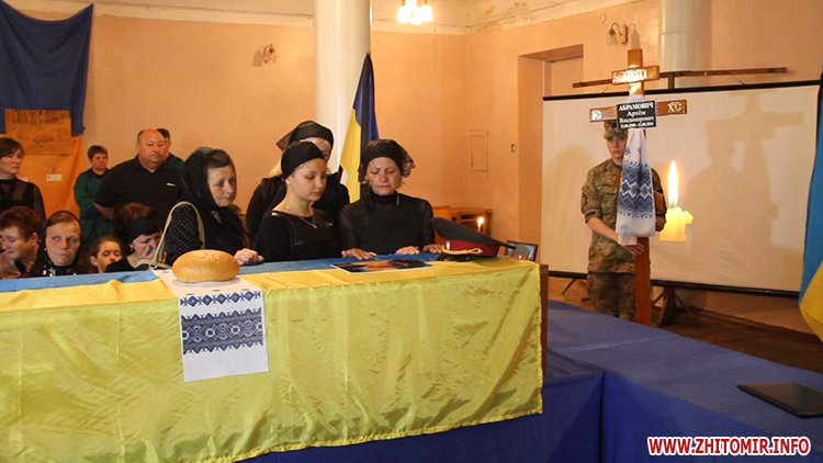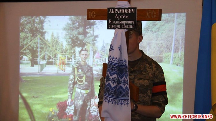 Як повідомляв Житомир.info, пізно ввечері 22 травня кілька сотень житомирян утворили «живий коридор» на в’їзді у місто. Так, навколішках з квітами і лампадками люди зустрічали загиблого офіцера 30-ї бригади Артема Абрамовича.