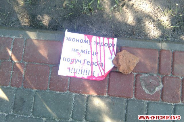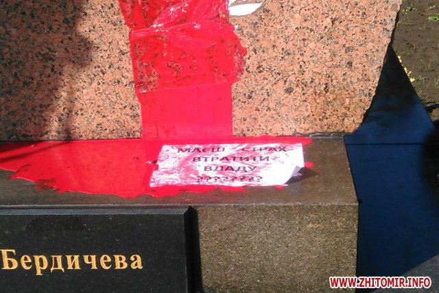 В ніч на 27 травня у Бердичеві невідомі облили червоною фарбою нещодавно встановлений «Меморіал Слави».