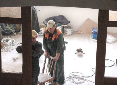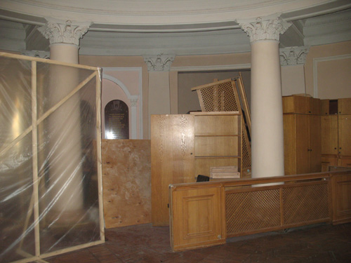 Старая мебель вынесена и сложена в холле рядом с кабинетом.