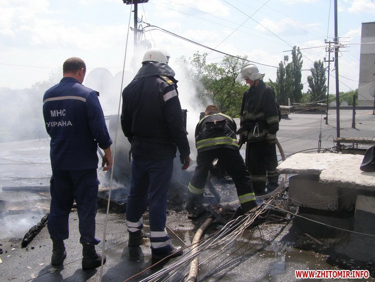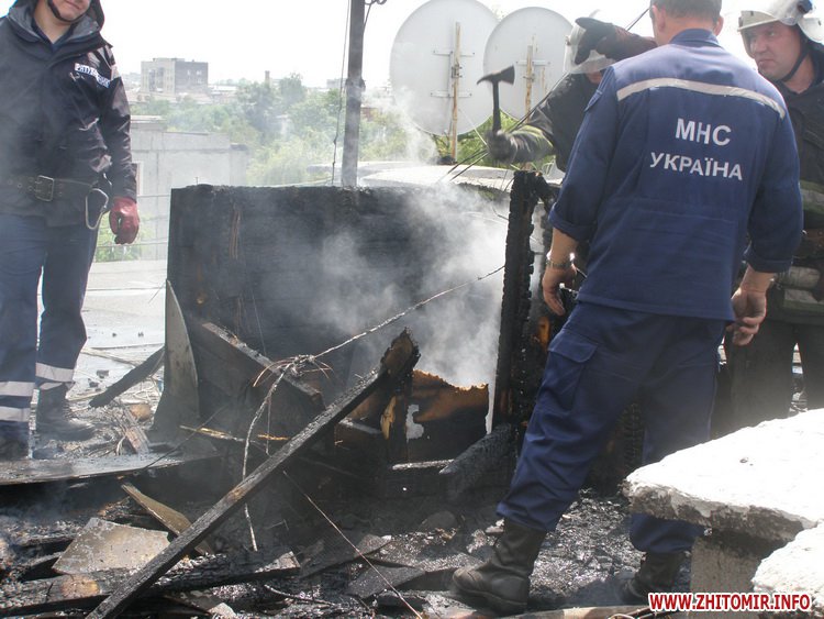 «2 июня в 13:50 в службу спасения «101» города Житомира поступило сообщение о пожаре. Горожане заметили густой дым на крыше пятиэтажки на улице Хлебной. Через несколько минут спасатели были уже на месте происшествия. По словам жителя пятиэтажки, на крыше дома часто собирались какие-то люди и неизвестно чем там занимались. Когда пожарные взобрались на крышу, то увидели как горит деревянная надстройка для выхода на крышу
