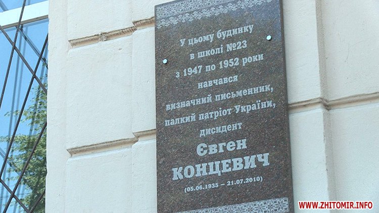 Саме 5 червня Євгену Концевичу мало б виповнитись 80 років. Дошку встановили на фасаді гімназії №23, учнем якої із 1947-го по 1952-й рік був письменник.