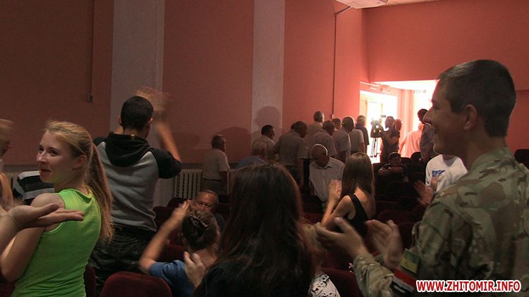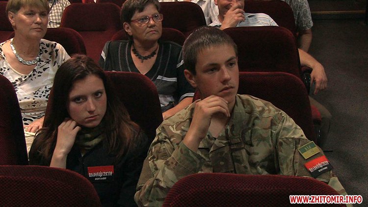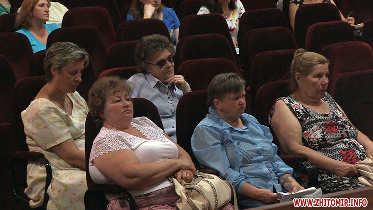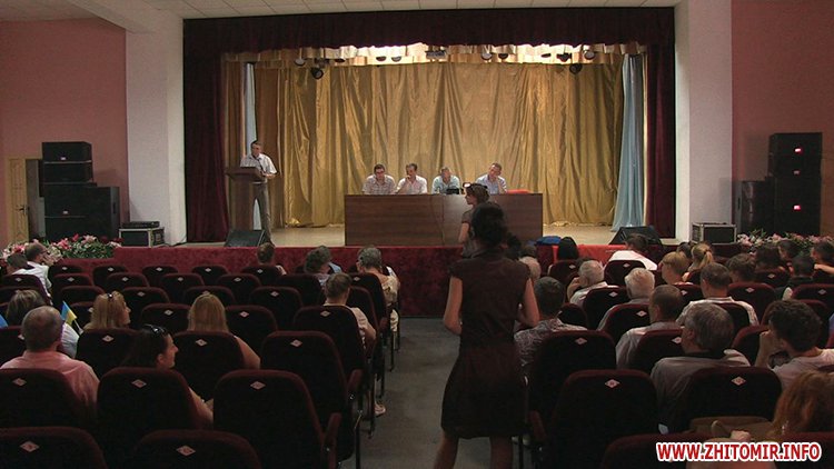 Житомиряни зібралися у міському Палаці культури, щоб обговорити перейменування вулиці Жукова на вулицю Героїв 95-ї бригади, Сабурова – на Романа Шухевича, та вулиці Чапаєва – на Степана Бандери.