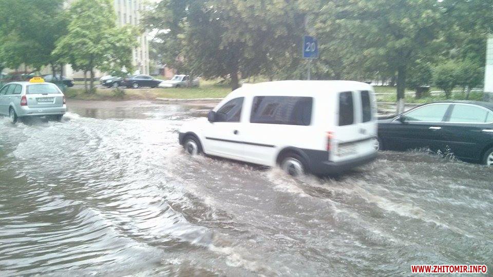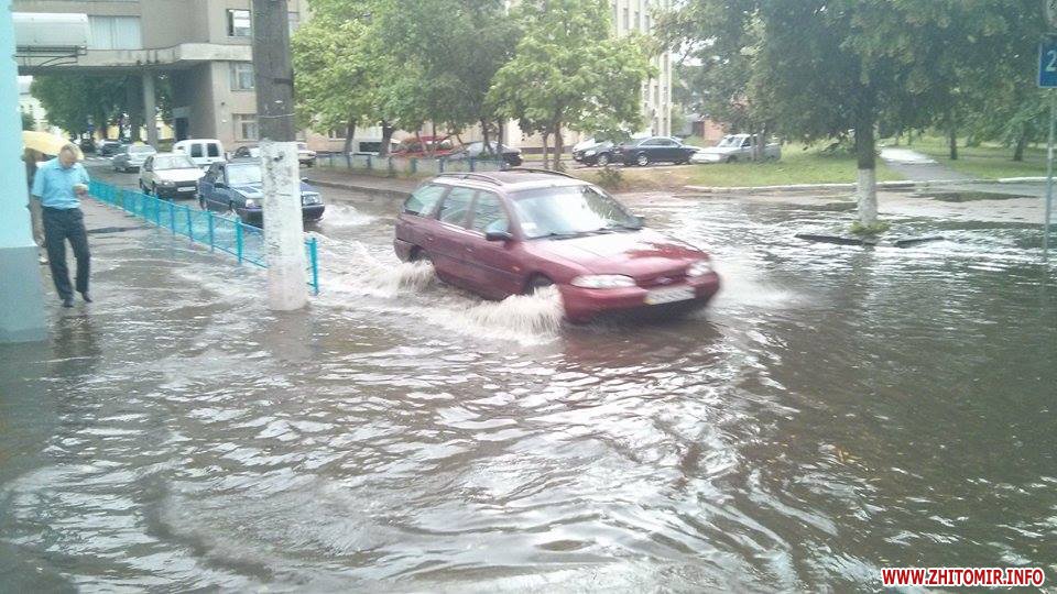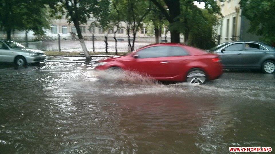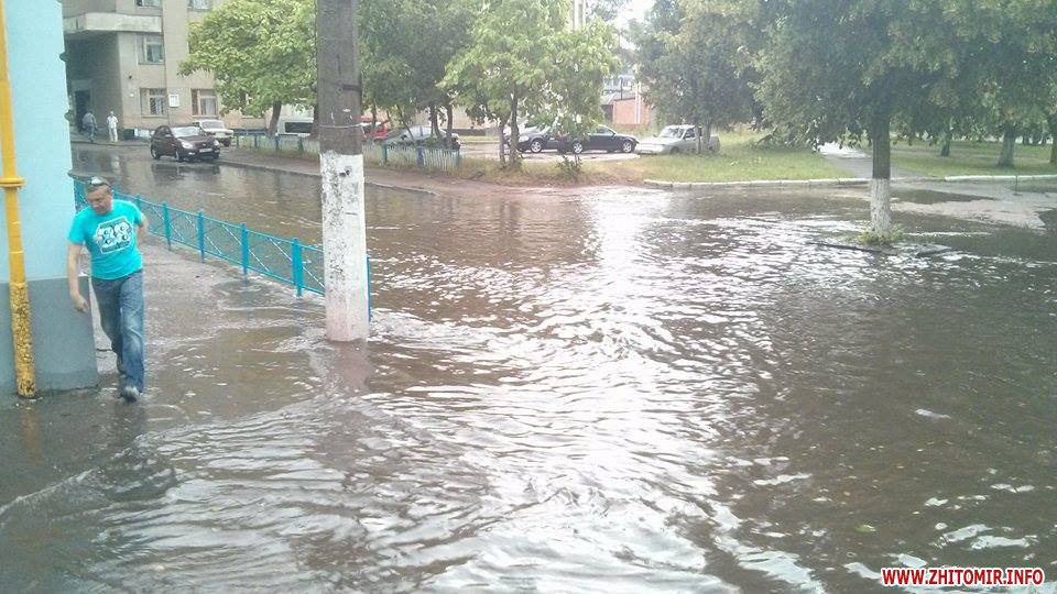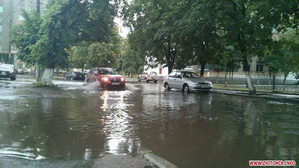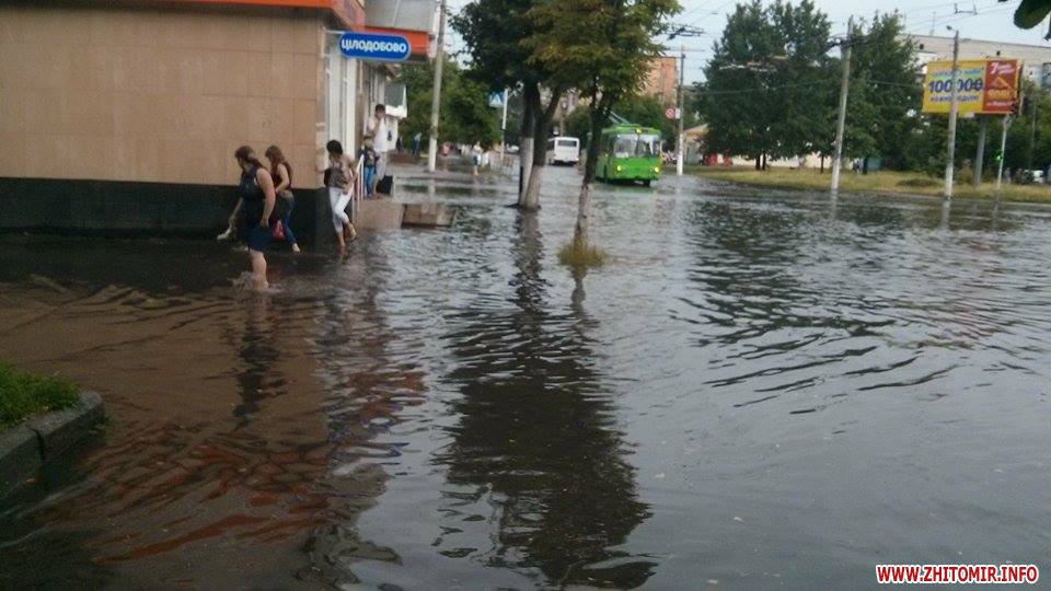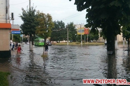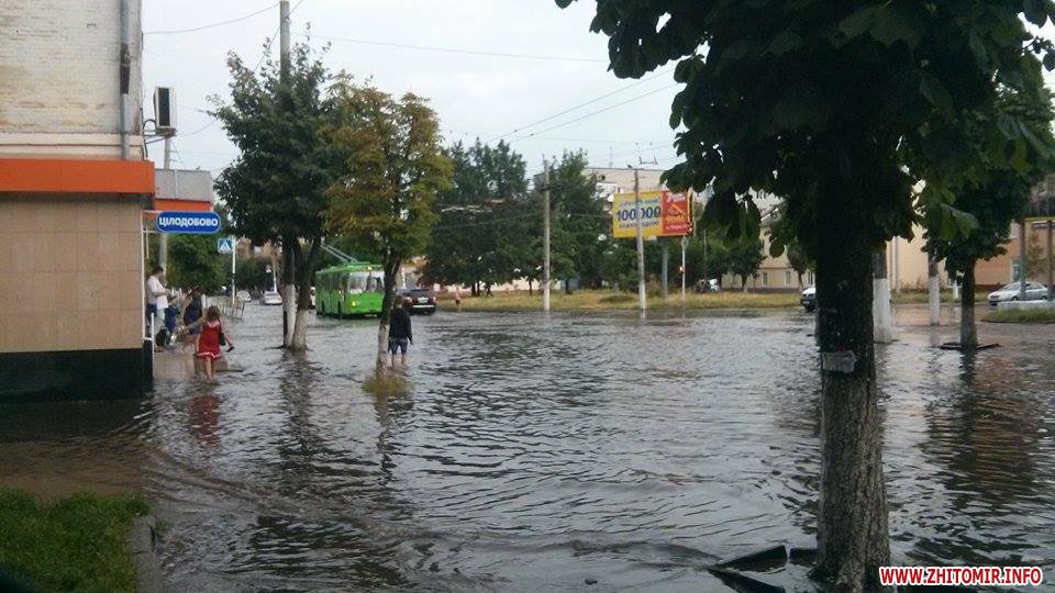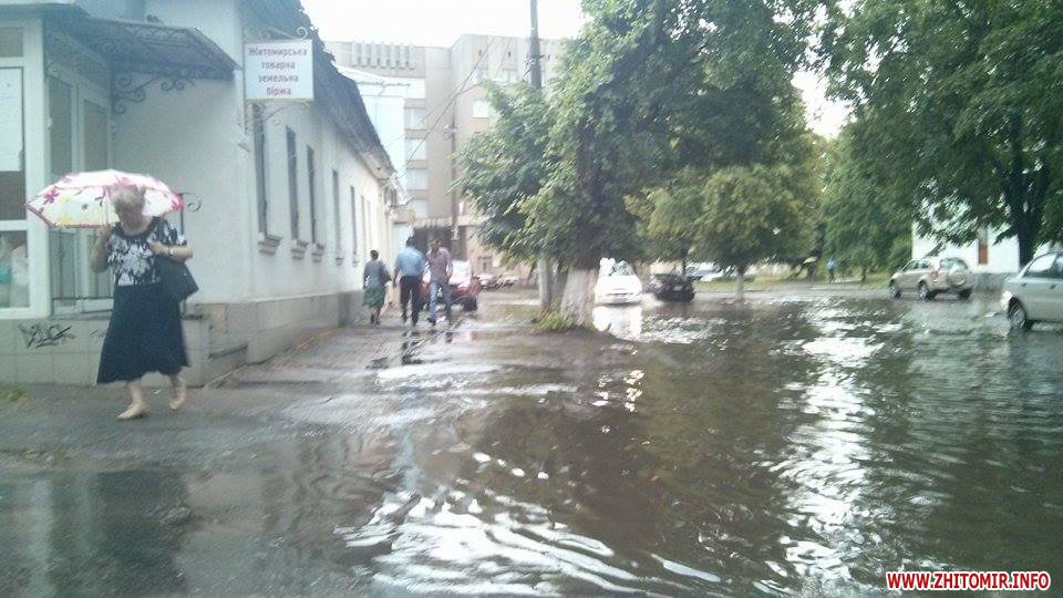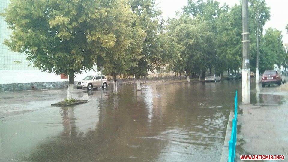 Улица Малая Бердичевская, на которой расположены здания облгосадминистрации, залита водой.