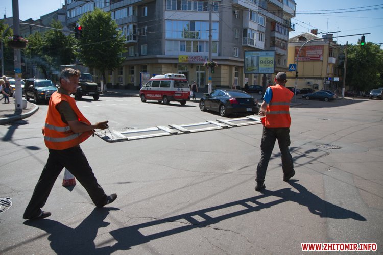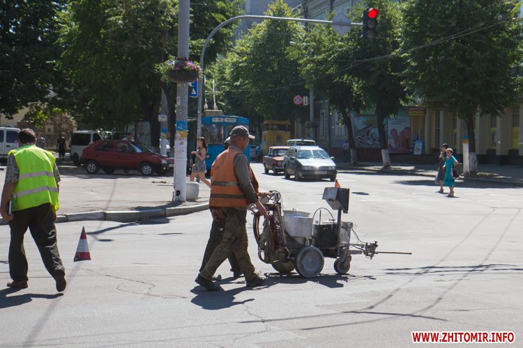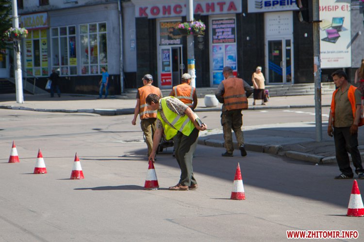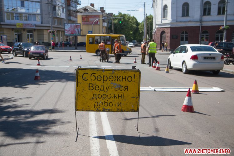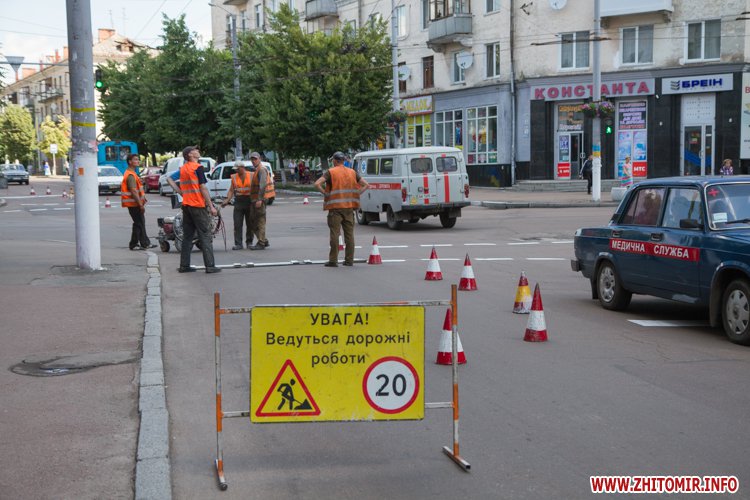 Про це Житомир.info розповіли працівники комунального підприємства «Управління автомобільних шляхів», які 23 червня працюють перехресті вулиць Театральна-Велика Бердичівська.