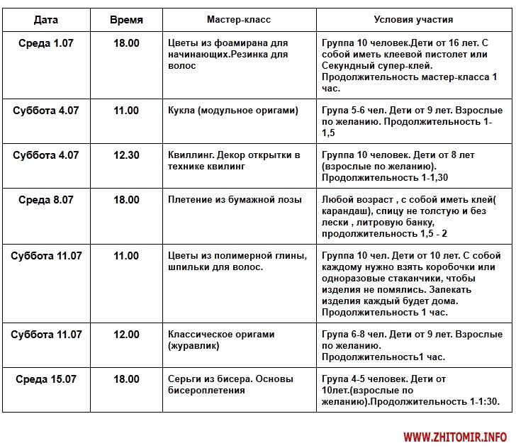 Через десять дней инициаторы проекта составили расписание мастер-классов.