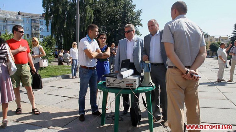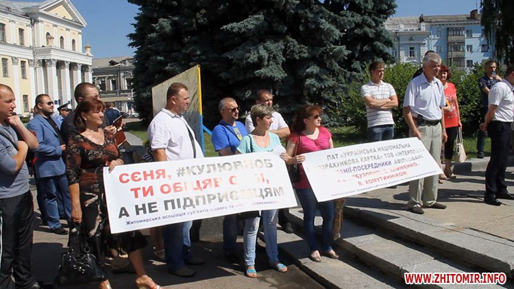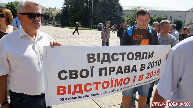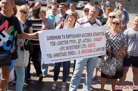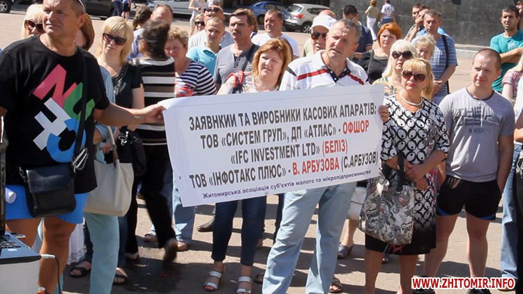 Близько сотні приватних підприємців зібрались на майдані Корольова біля облдержадміністрації у середу 24 червня. Організатори протестної акції розповідають: представники малого та середнього бізнесу прийшли, аби висловити незгоду з обов'язковим введенням касових апаратів. Підприємці переконані, якщо у Верховній Раді приймуть закон «Про застосування реєстраторів розрахункових операцій у сфері торгівлі, громадського харчування та послуг», то таким чином депутати знищать малий бізнес у державі.