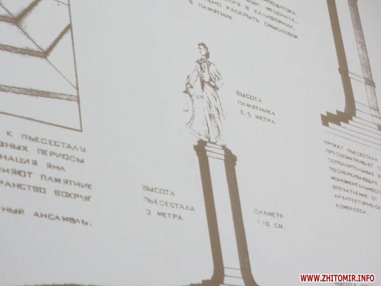 Як повідомляв Житомир.info, відповідно до презентованої схеми, висота пам’ятника буде становити 5,5 метра: 2,5 метра - скульптура та 3 метри п’єдестал.