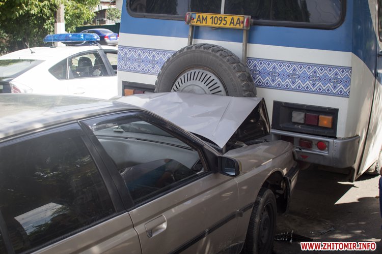 Днем 28 июня на ул.Щорса в Житомире автомобиль Peugeot на остановке въехал в рейсовый автобус.