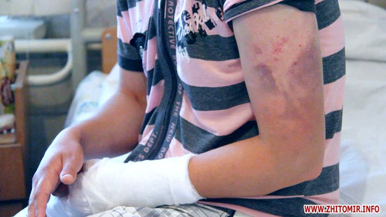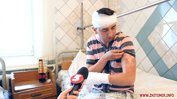 «Серйозні забої, зламана рука і в двох місцях серйозно розбита голова була. Медики надали мені допомогу, зашили голову, хотіли мене поселити в палату, але ми в рамках безпеки вирішили покинути межі Олевська і за допомогою друзів ми переїхали в інше місто», – каже він.