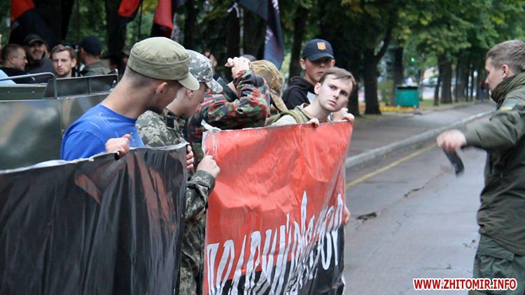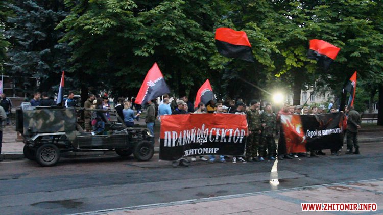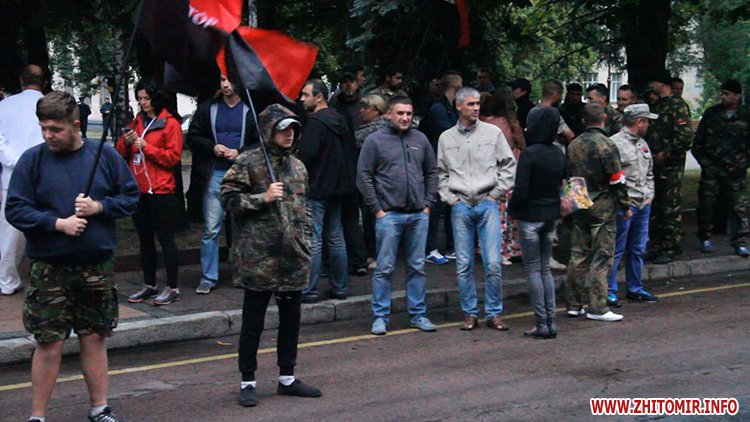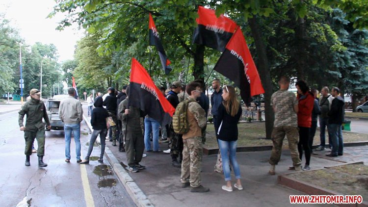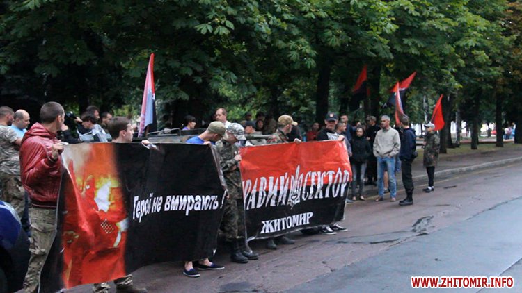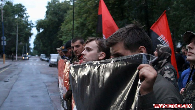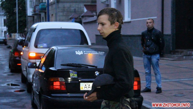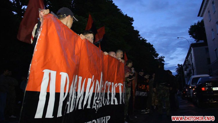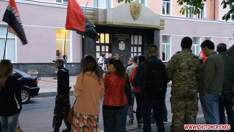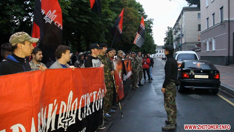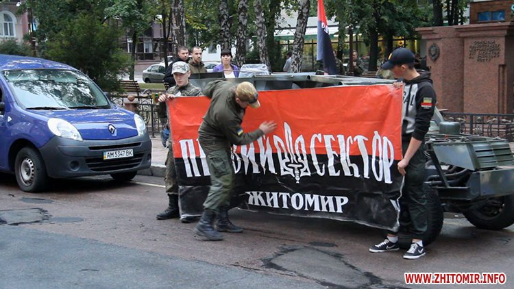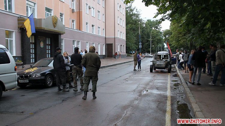 Ввечері у суботу, 11 липня, близько п’ятдесяти членів «Правого сектору» зібрались біля Житомирського обласного управління МВС.