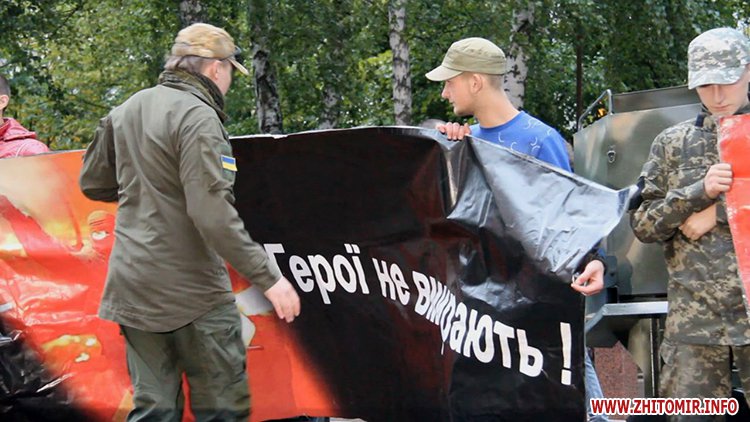 Люди прийшли, щоб висловити солідарність зі своїми бойовим побратимами у зв’язку з ситуацією, що склалась у Мукачевому. До акції також долучились бійці батальйону «Айдар» та активісти ГО «Рух Автомайдан Житомир».