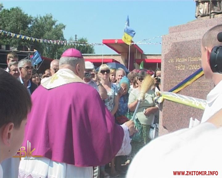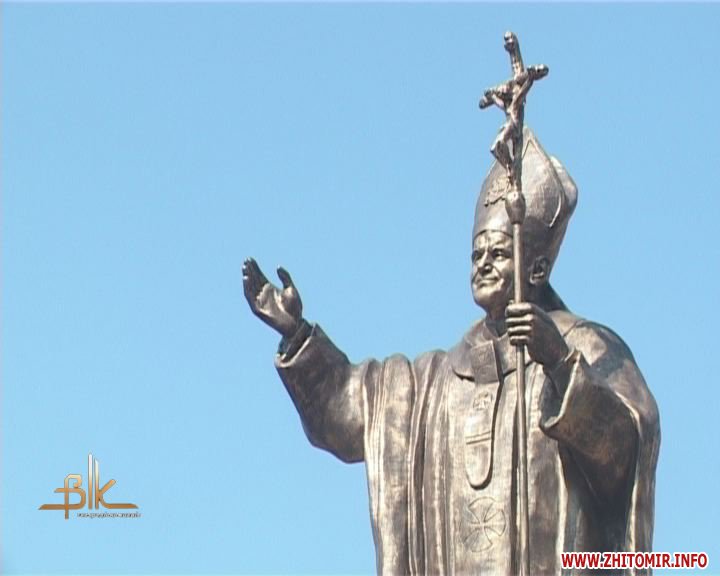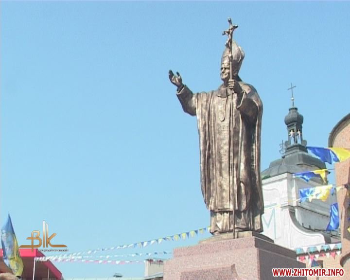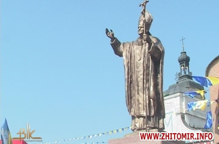 у Бердичеві Святіший Йоан Павло ІІ проповідуватиме життя у Бозі власною присутністю: на однойменній площі перед Всеукраїнським Санктуарієм Бердичівської Божої Матері перші особи римо-католицької церкви в Україні освятили пам’ятник багаторічному очільникові католицької церкви.