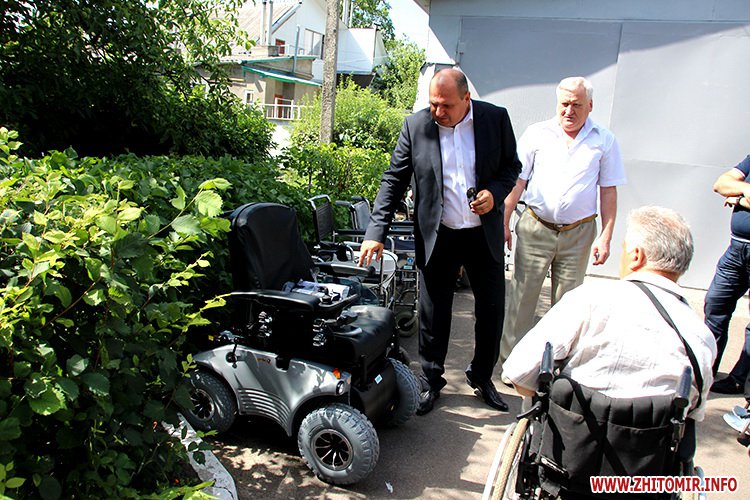 Сучасний інвалідний візок з електроприводом Житомирському територіальному центру обслуговування пенсіонерів, інвалідів та одиноких непрацездатних громадян передали благодійники. Коштує такий візок кілька тисяч доларів. За словами директора обласного благодійного фонду «Хлібний дім» Аркадія Маргуліса, придбали його німецькі волонтери, з якими його організація співпрацює вже понад 20 років.