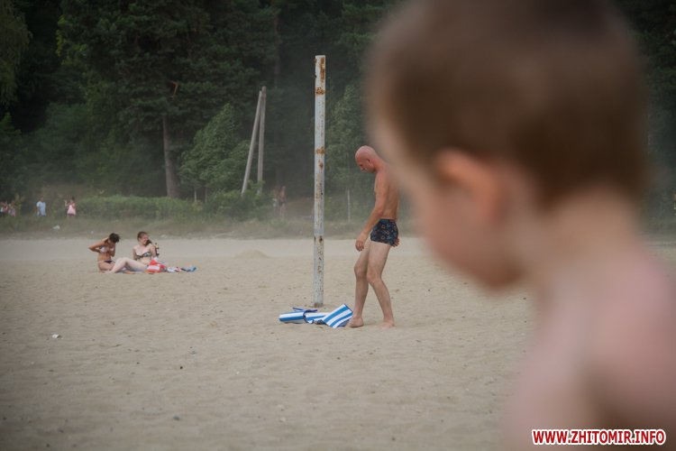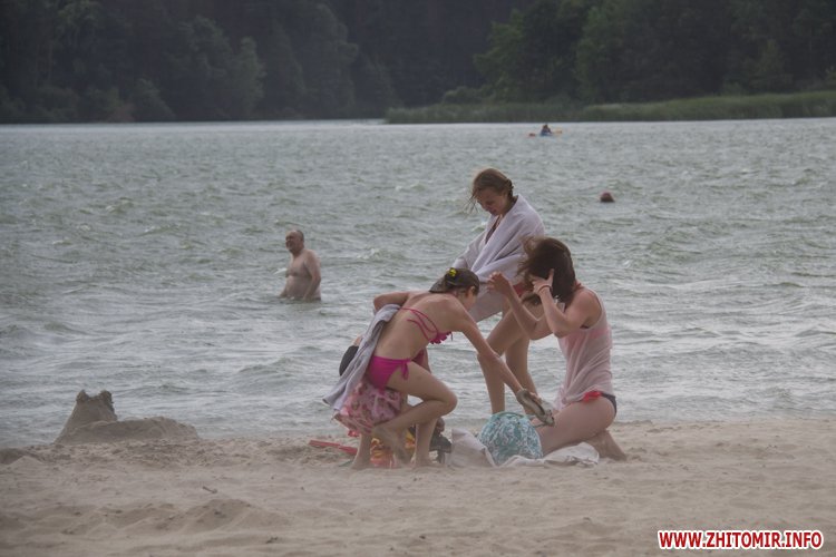 Сильный ветер помешал отдыху житомирских пляжников, отдыхающих на Тетереве 26 июля.