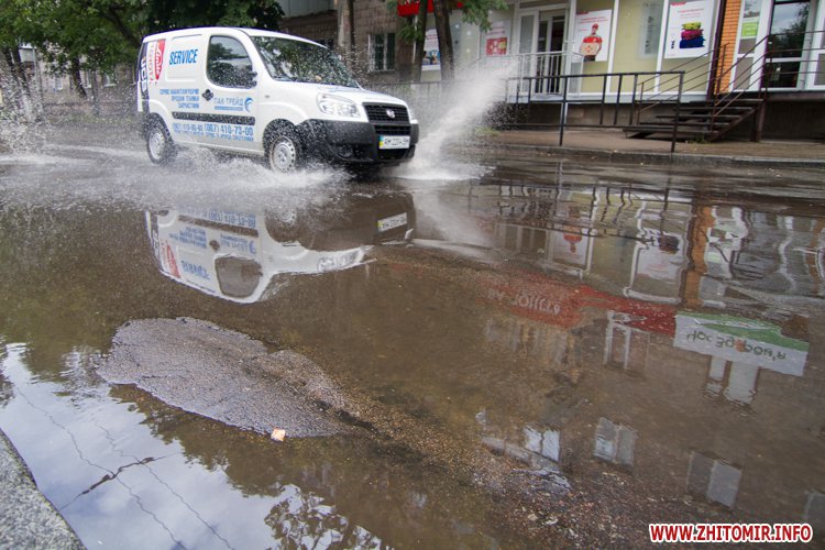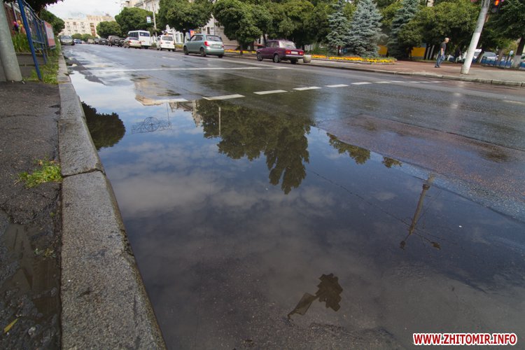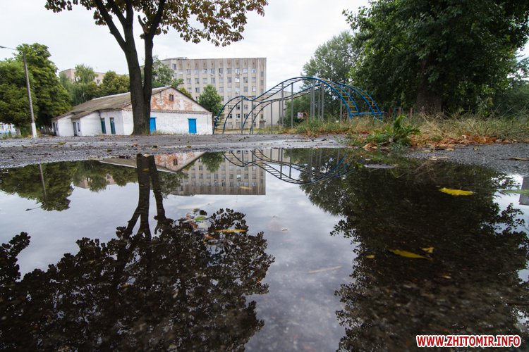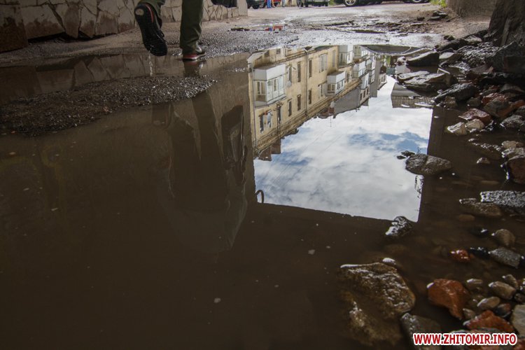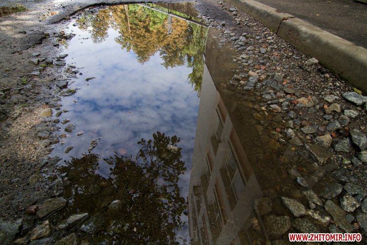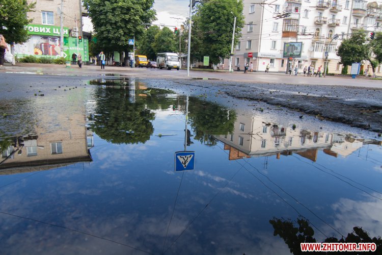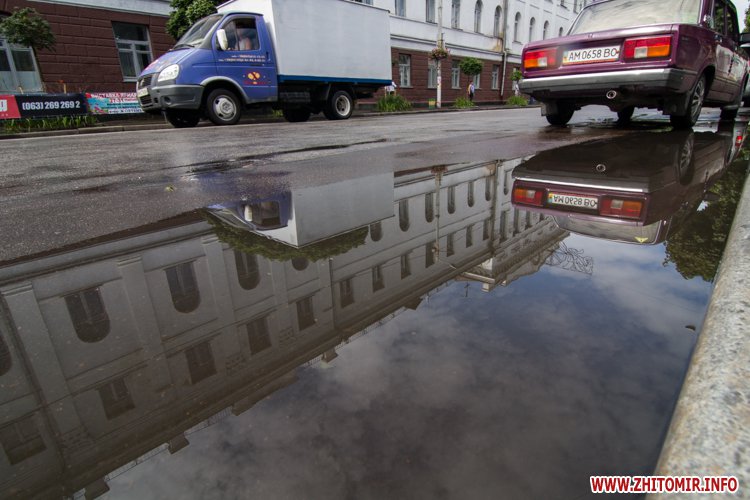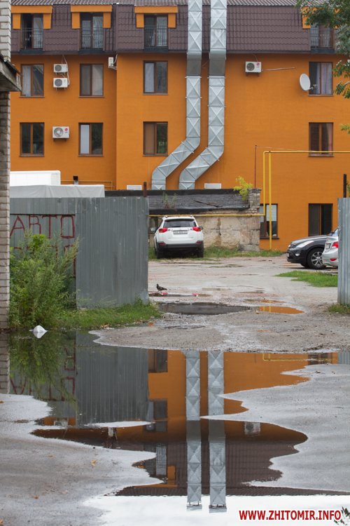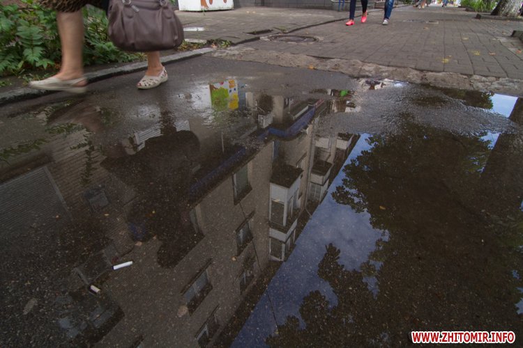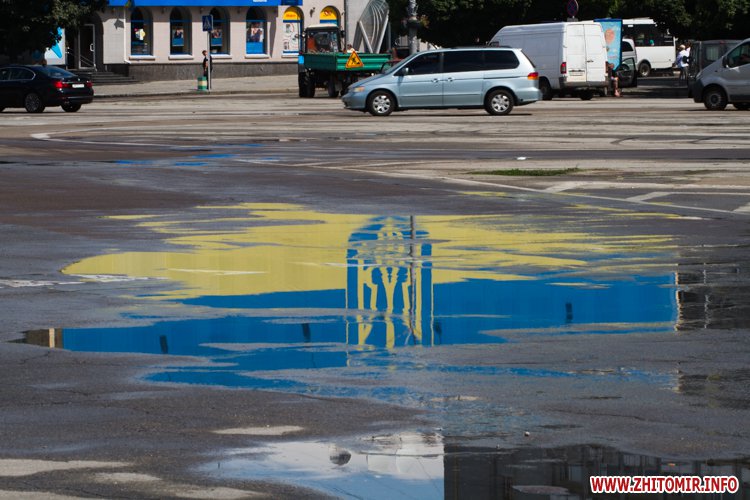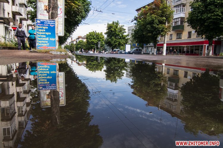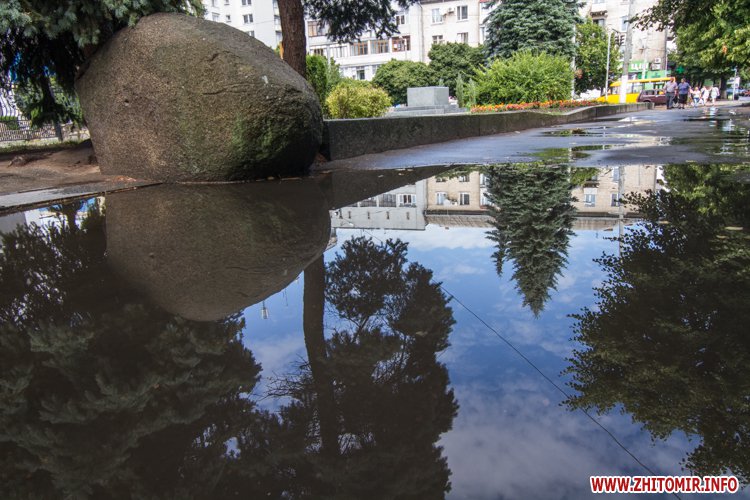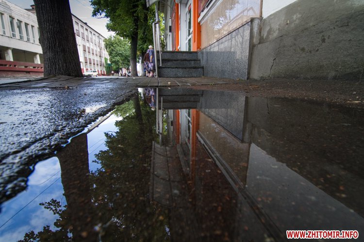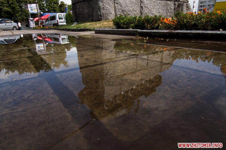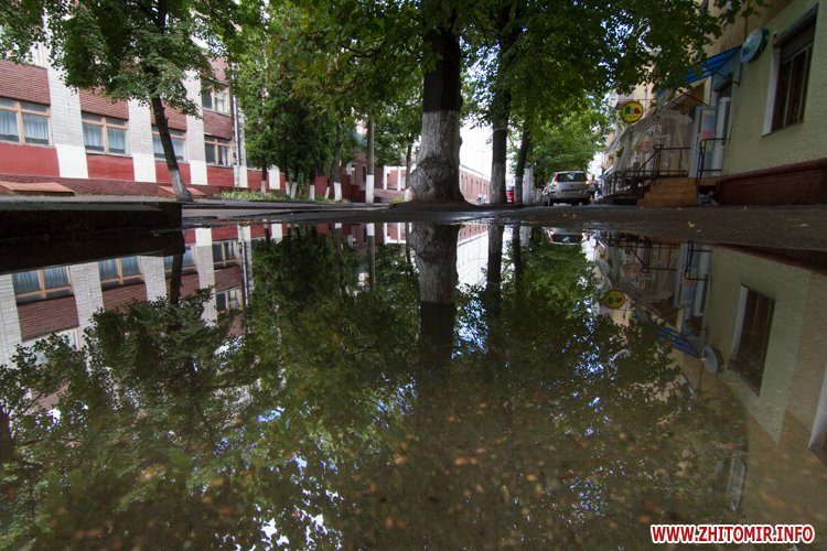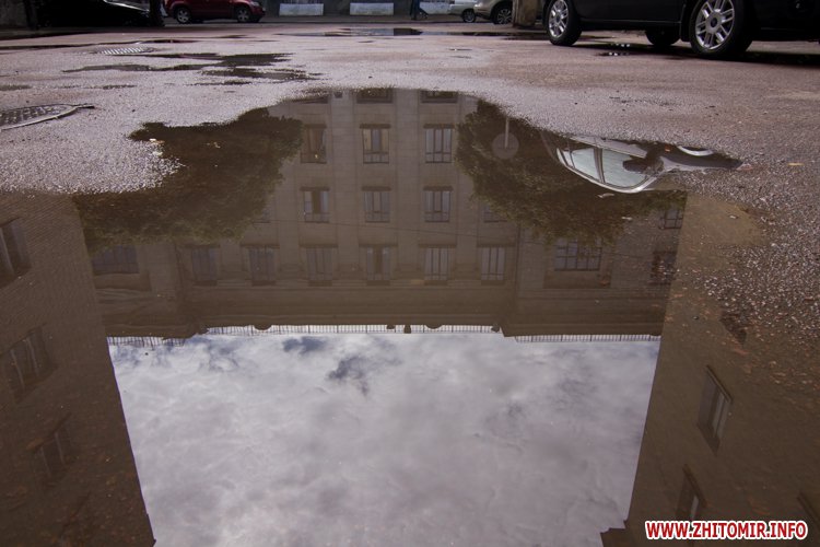 Житомир.info вирішив поглянути на змокрілий Житомир, де побачив віддзеркалення міста у літніх калюжах, які утворилися після зливи.