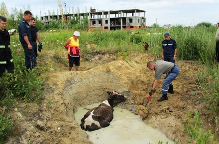 29 липня о 10:34 рятувальникам міста Житомир надійшло повідомлення з проханням допомогти вивільнити корову, яка опинилася в ямі.
