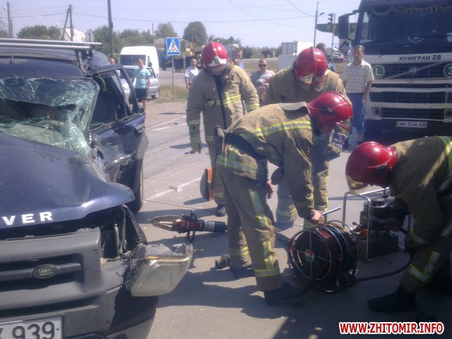 «4 серпня о 12:42 до Коростенських рятувальників надійшло повідомлення про дорожньо-транспортну пригоду, що сталася на околиці Коростеня на перехресті вулиці Жовтнева та траси Київ-Ковель. Автомобіль Land Rover зіткнувся з вантажним автомобілем Volvo. В результаті пригоди водій позашляховика від отриманих травм загинув на місці. А пасажир, юнак 1995 року, з численними травмами госпіталізований до реанімаційного відділення Коростенської центральної міської лікарні», – йдеться у повідомленні.