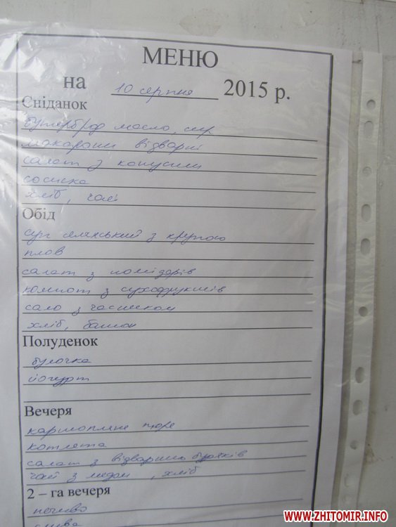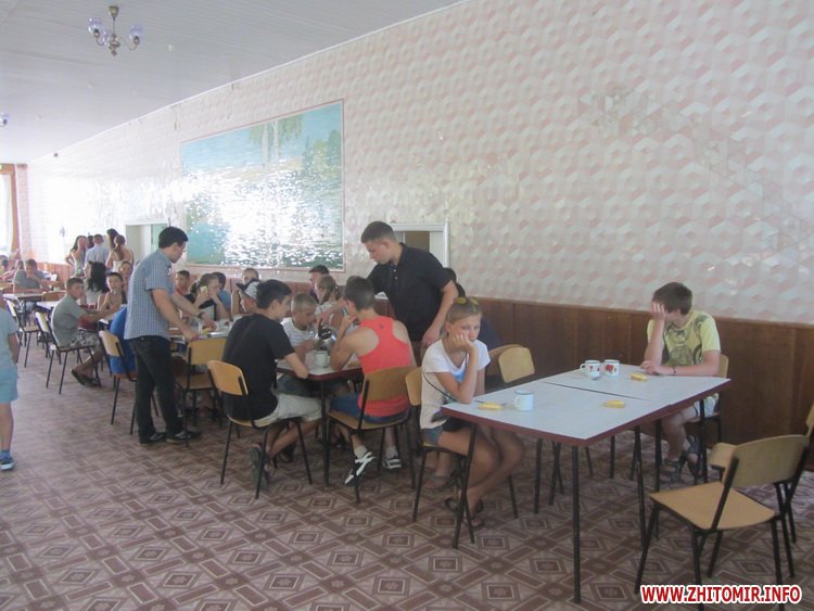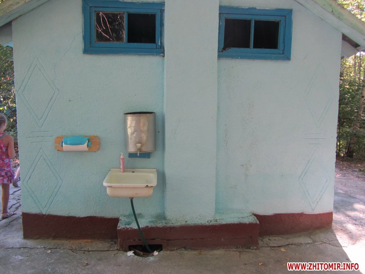 В цю зміну в таборі очікується 120 дітей,з них – 45 з Житомира. На території один туалет для дітей, «баня» з душовими кабінками, в яких відсутні полиці для засобів гігієни, а кабінки – без дверей. Ще окремо дві душові є на вулиці. Гаряча вода – цілодобово. Діти проживають в будинках по 13-14 людей в кімнаті. Харчуються – чотири рази на день.