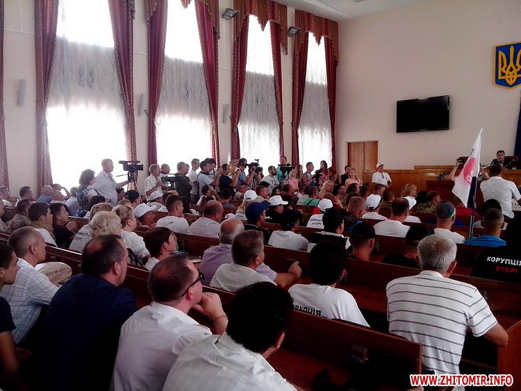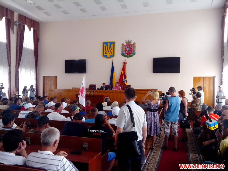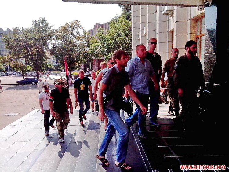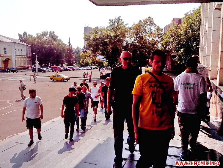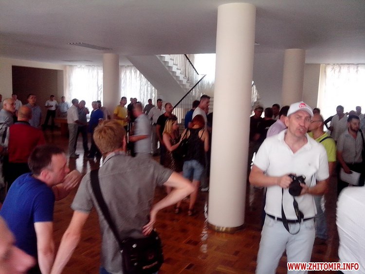 11.00 в здание Житомирской облгосадминистрации на площади Королева, где после 11 часов начались общественные обсуждения кандидата на должность начальника Главного управления Госгеокадастра в Житомирской области, зашли активисты и представители общественности.