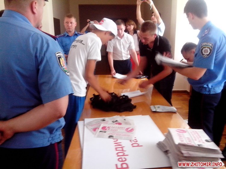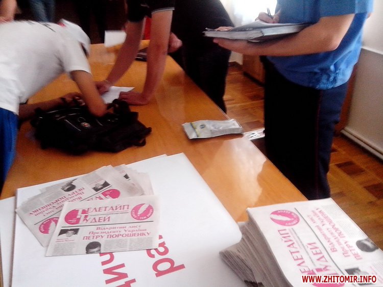 В коридоре раздавали газету «Телетайп тудей». Кроме того, со слов очевидцев, у одного из распространителей, паренька лет 15-ти, в рюкзаке был обнаружен «ствол» - как минимум, травматическое оружие. Правоохранители изъяли пистолет и запечатали его в пакет.