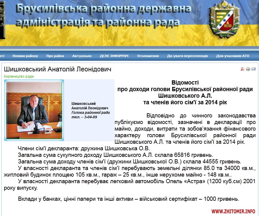 На сайті Брусилівської РДА та райради є інформація, що Анатолій Шишковський з 2014 рок очолює місцеву районну раду. Є також відомості з декларації Шишковського за 2014 рік.
