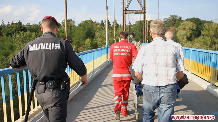 Как сообщал Житомир.info, подвесной мост – «любимое» место житомирских самоубийц: 30 мая 2015 года с подвесного моста в парке Гагарина спрыгнул парень, 9 июня - двое мужчин, одному из которых удалось выжить. 29 июня упала и погибла 17-летняя девушка, а 12 июля под мостом нашли тело 34-летней житомирянки.