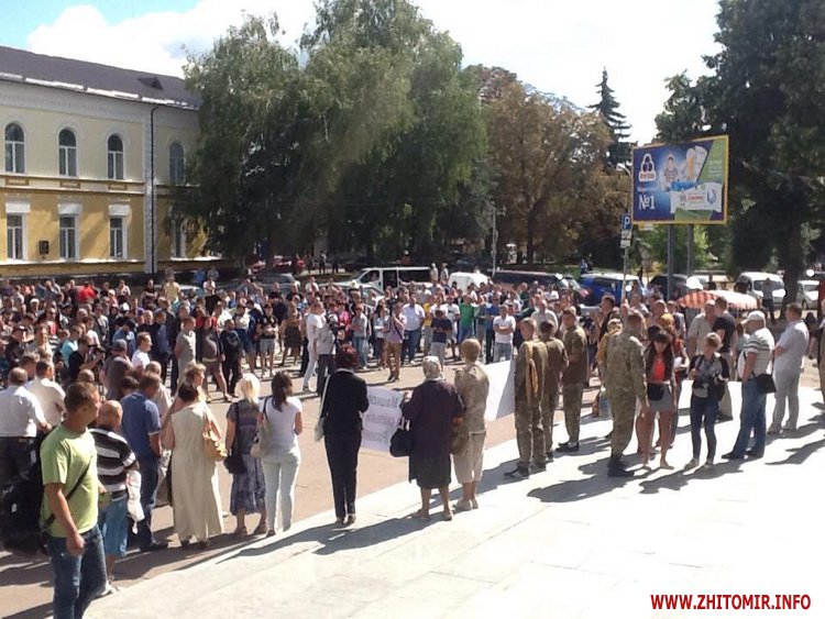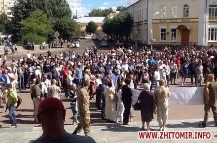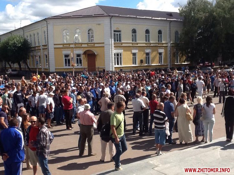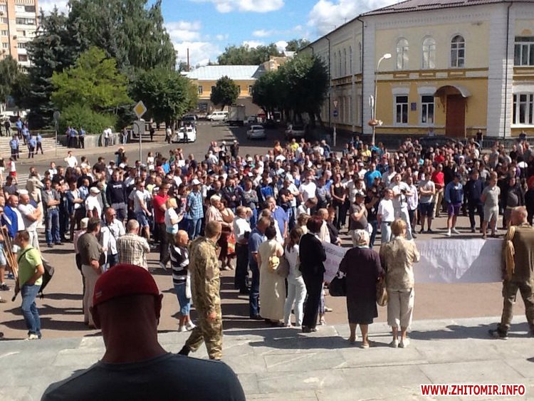 На пятачке перед кинотеатром собрались несколько сотен парней и мужчин, которых с утра свозили в Житомир из районов Житомирской области, а также соседних Ровенской и Киевской областей.