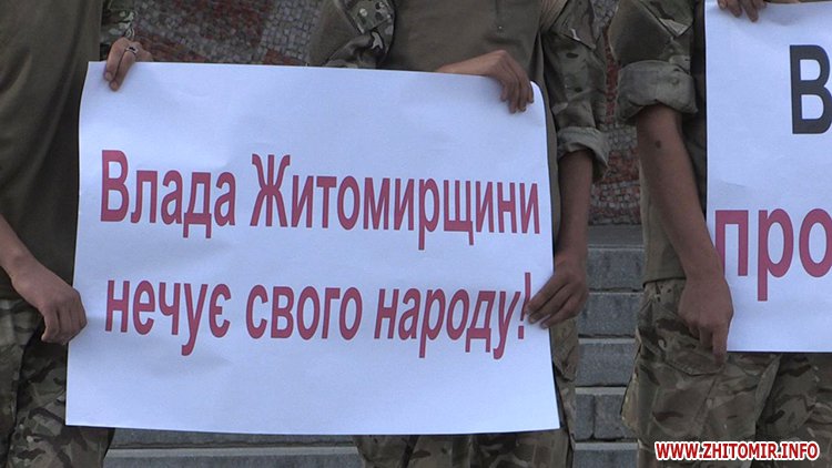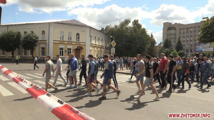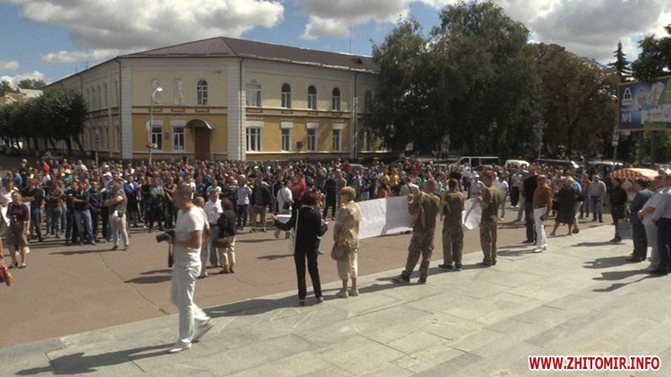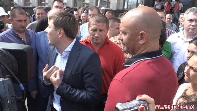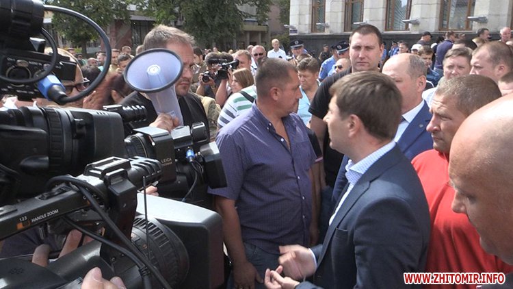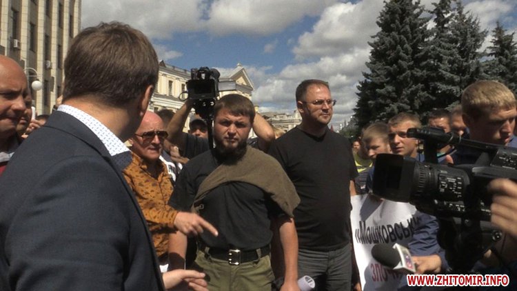 Після виступу членів громадської ради та інших бажаючих активісти пройшли через міліцейський кордон і рушили до будівлі ОДА. Люди вимагали, щоб вийшов голова облдержадміністрації Сергій Машковський. Зрештою через декілька хвилин Машковський вийшов і його одразу оточили активісти. Періодично натовп скандував «Ганьба!» і вимагав у губернатора написати заяву на звільнення. Сергій Машковський звернувся до активістів, які приїхали з Олевська, і запевнив, що побоювання громади що в них відберуть землі, не мають підстав.