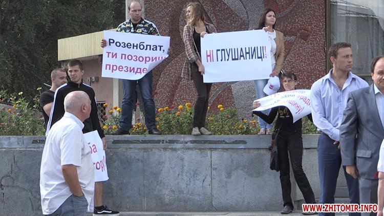 У Житомирі 18 серпня близько 11.00 біля кінотеатру «Жовтень» розпочався мітинг. Члени громадської ради і кількасот активістів виступали проти призначення Максима Глушаниці головою управління Держгеокадстру в Житомирській області. Голова громадської ради при Житомирській ОДА розповів: у цей час мали відбутися другі громадські слухання щодо кандидатури Максима Глушаниці, але голова облдержадміністрації підписав подання про його призначення начальником управління Держгеокадастру до проведення громадських обговорень.